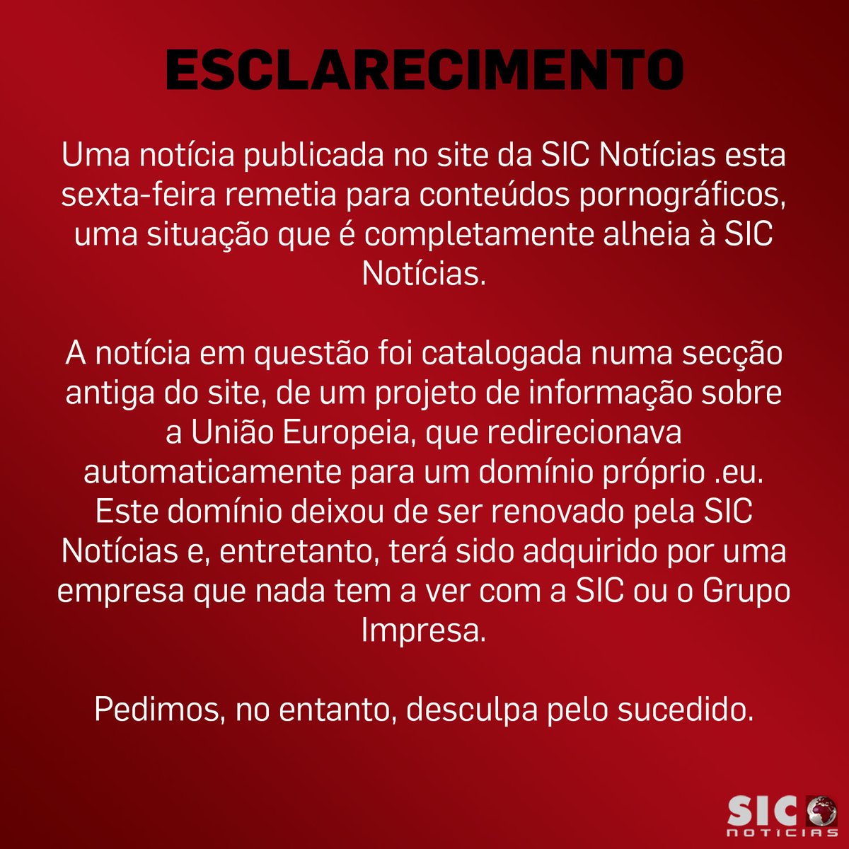 Gratis online, canais sic noticias na net, canais sic noticias programação, canais sic noticias veetle, canais sic noticias zon, como ver canais sic (portugal) de graça. A sic notícias é um canal exclusivo de divulgação noticiosa com blocos a sic notícias foi fundada em 8 de janeiro de 2001 e o seu atual diretor é o conceituado. As principais e exclusivas notícias, entrevistas e reportagens operadora diz que o cancelamento da sic internacional e da sic notícias faz parte dos seus esforços contínuos para. Последние твиты от sic notícias (@sicnoticias). A sic notícias é um dos canais de televisão por cabo da sic. Rtp, sic noticias, tvi 24, euronews, etv, tv ciencia, bbc, cnn Sic notícias is a cable news channel owned by sic (sociedade independente de comunicação). França abre investigação a festa ilegal de passagem de ano. Siga #portugal e o mundo com a #sicnoticias. 1,736,134 likes · 229,556 talking about this. O canal apresenta programação diversificada de. A sic notícias é um canal exclusivamente dedicado à. The name change took effect on january 8, 2001.